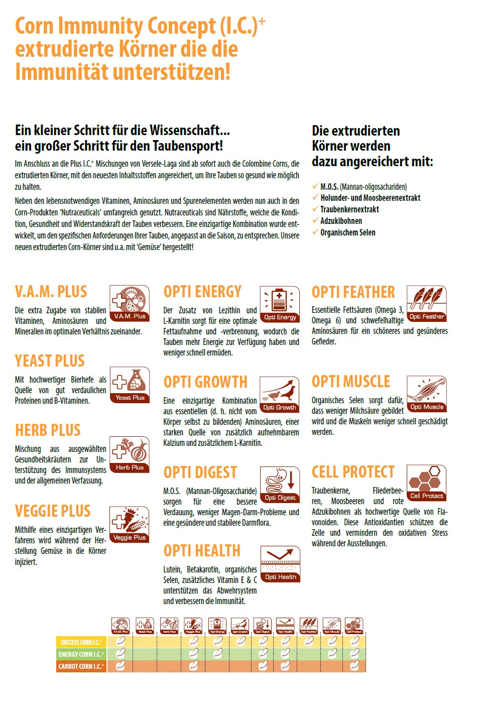 Colombine Success Corn I.C.+ wurde speziell entwickelt, um die Körnermischungen vor allem während der Zucht und Mauser anzureichern.